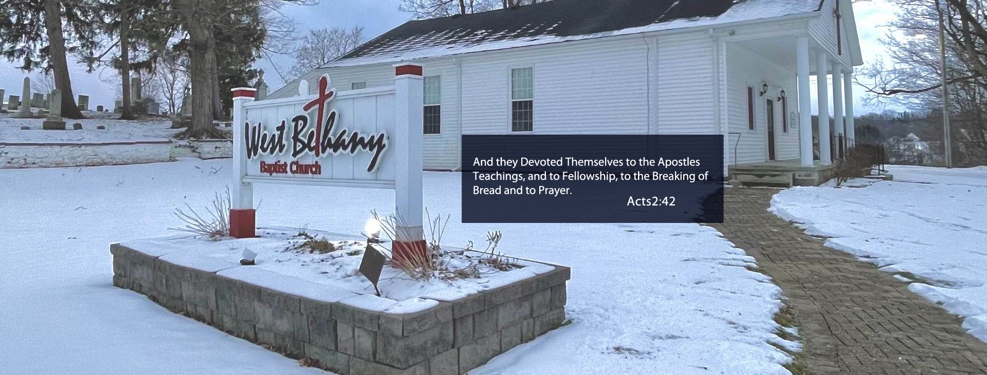 We are a Bible believing Baptist church located in West Bethany, NY. Our services begin at 10:30 am Sunday mornings and all are welcome.